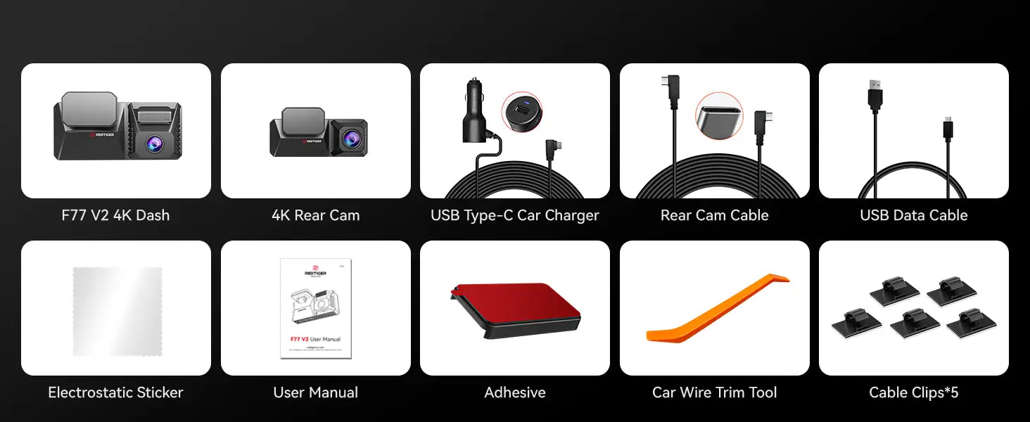 The F77 host can use the power cable of other models of redtiger dashcams (such as F7N series products), but their rear cameras are not compatible. This means that if you directly replace the originally installed dashcam with F77, the 4K rear camera will not be available. We recommend that you re-arrange the cables.