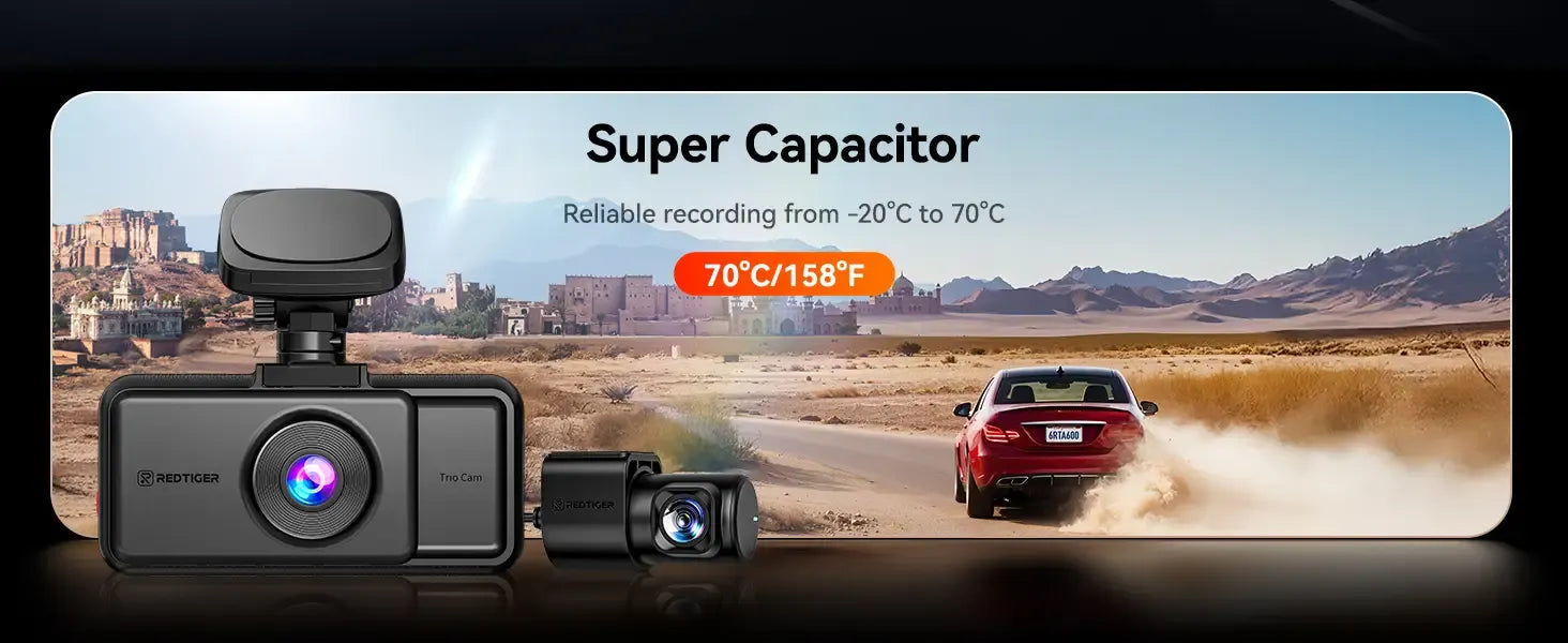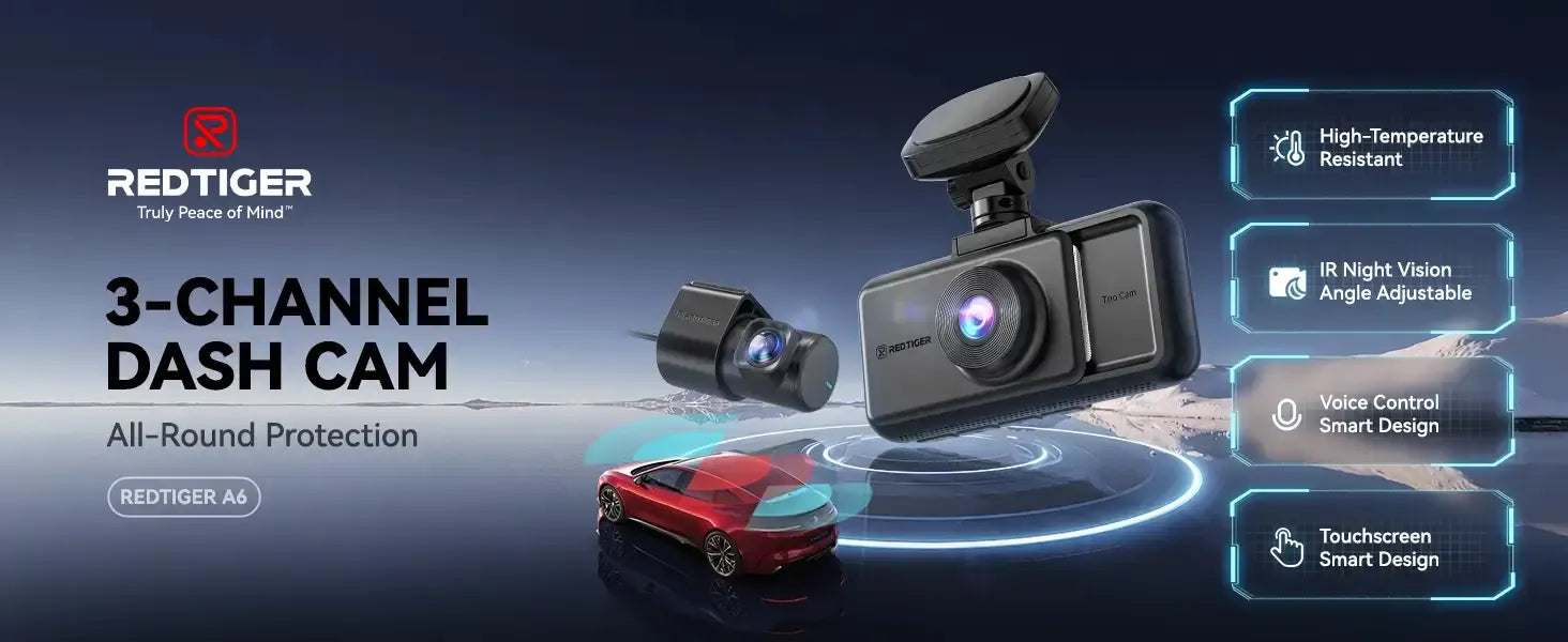 Redtiger A6 2.5k+1080P+1080P 3-Channel 5.8GHz Wifi Dash Cam A6