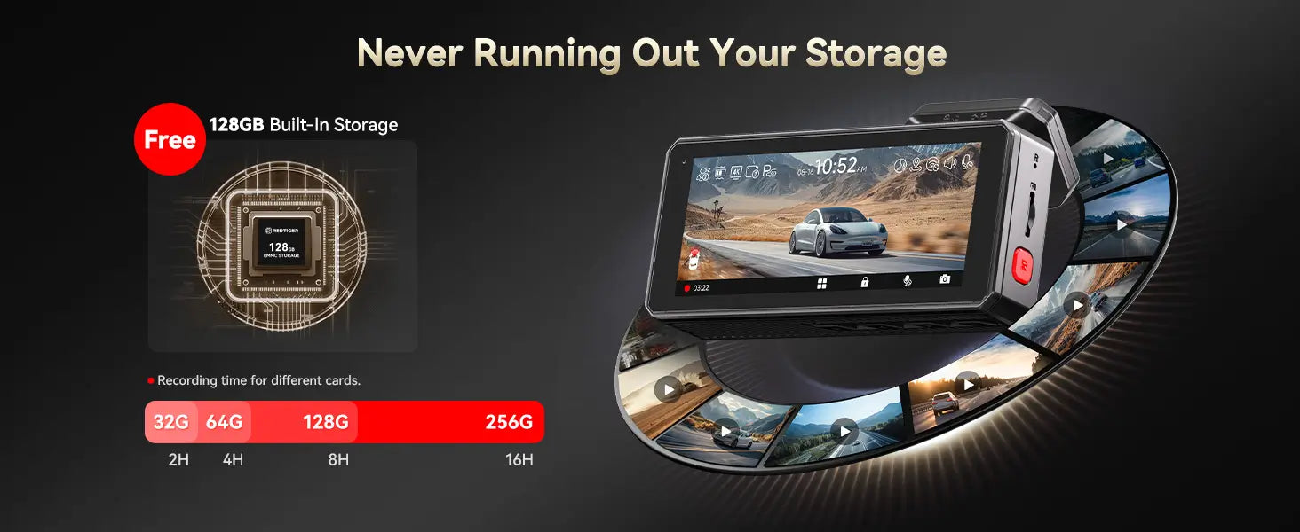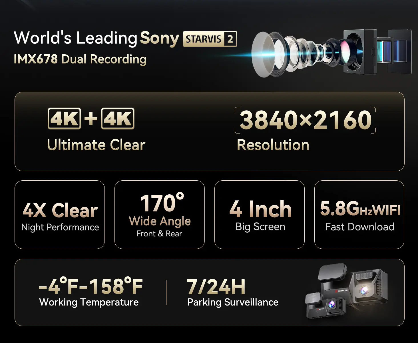 Get Free 1-year Extended WarrantyEquiped with 4K+4K 16MP Resolution, Starvis 2 Upgraded Night View, 5.8GHz WIFI & App Control,Free 128GB eMMC Built-In Storage, Free Hardwire Kit For Parking Security, Touch Screen & Voice Control, and GPS Tracking!