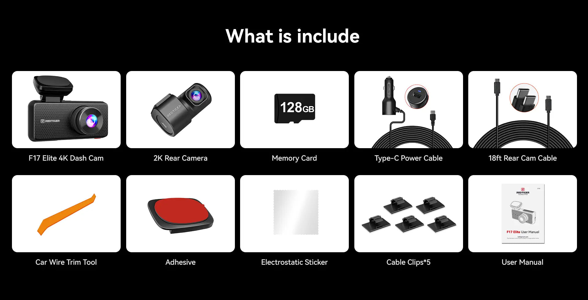 You will get a REDTIGER industrial-grade 128GB TF card for free. If you think you need a larger memory card, please select the additional configuration on the F17 Elite page, or enter and order from the link below. Redtiger SD Card 32GB-256GB.F17 Elite supports memory cards up to 512GB