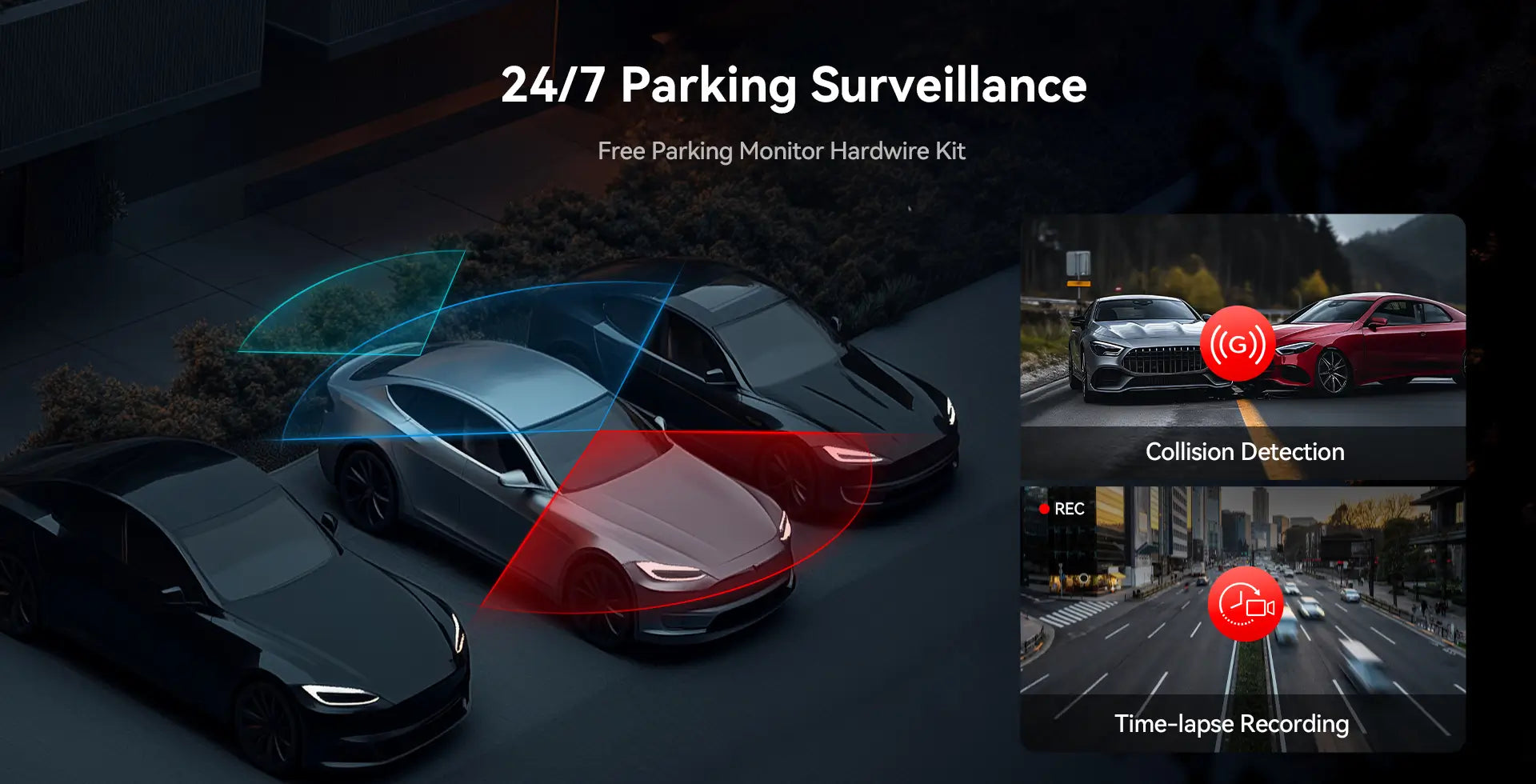 If a collision occurs while parked, the dash cam immediately begins recording to capture vital evidence.